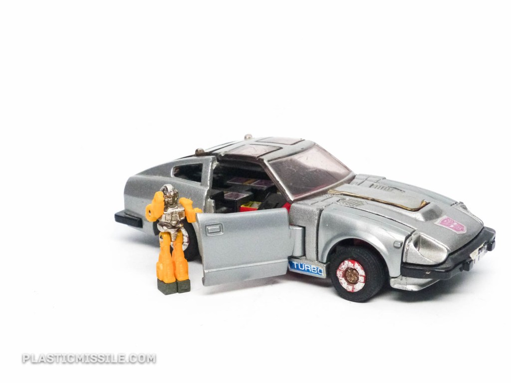 Condition-wise, I’m pretty amazed that the roof and rear windows are still intact, although there’s a hairline fracture on the windshield. Of course, his arms are floppy to all hell, and the only way to pose him is to rest his arms on a slight edge of his car hood / chest. That’s fine and dandy. Better than broken or missing. As with any vintage item, I’m sure G1’s in any condition will become harder to find as time goes on, so I think that collecting and preserving these artifacts for future generations to enjoy and marvel at. The quality of the materials in the newer reissues don’t compare by far, as the G1’s made in Japan (and most stuff from the 80’s made in Japan for that matter) are vastly superior, and it really shows through in the lack of detail in the head sculpts and the lustre of the finish.