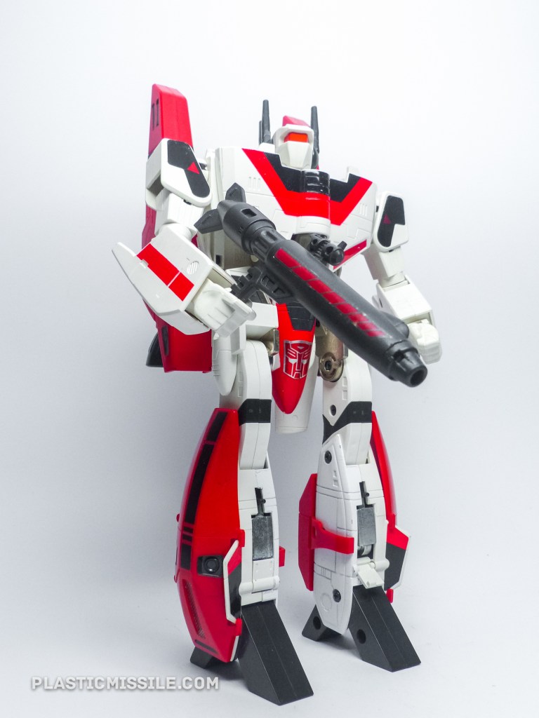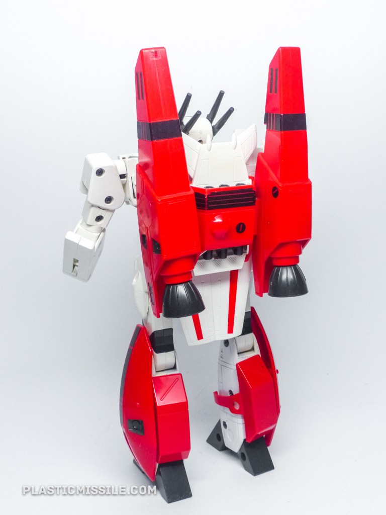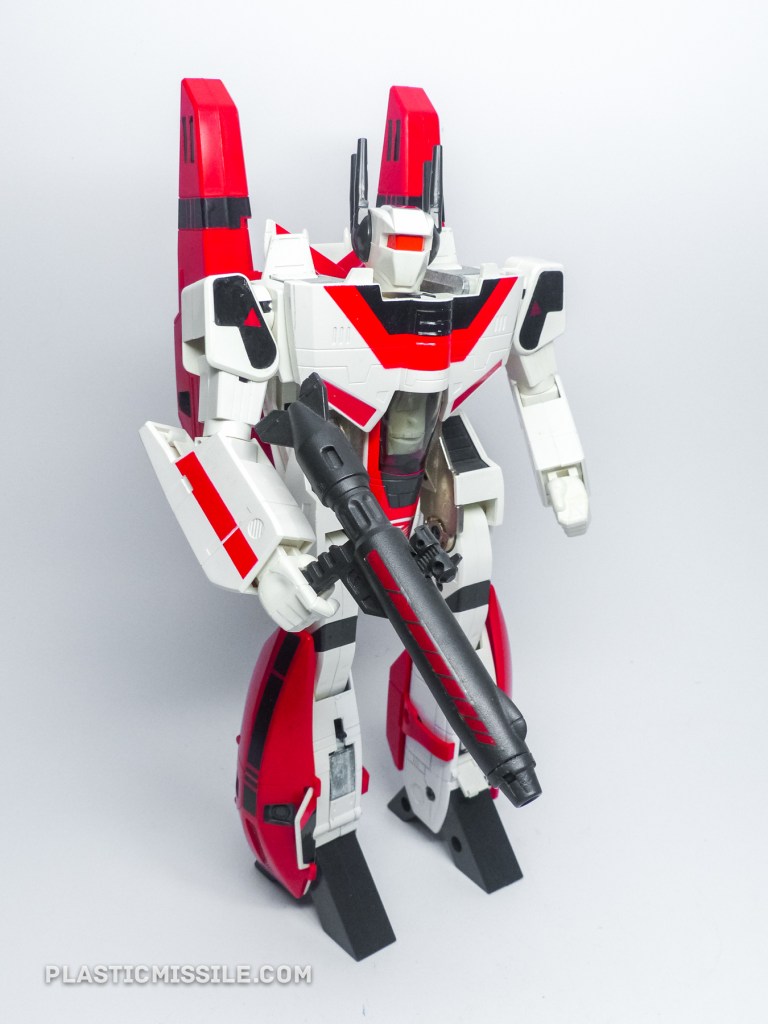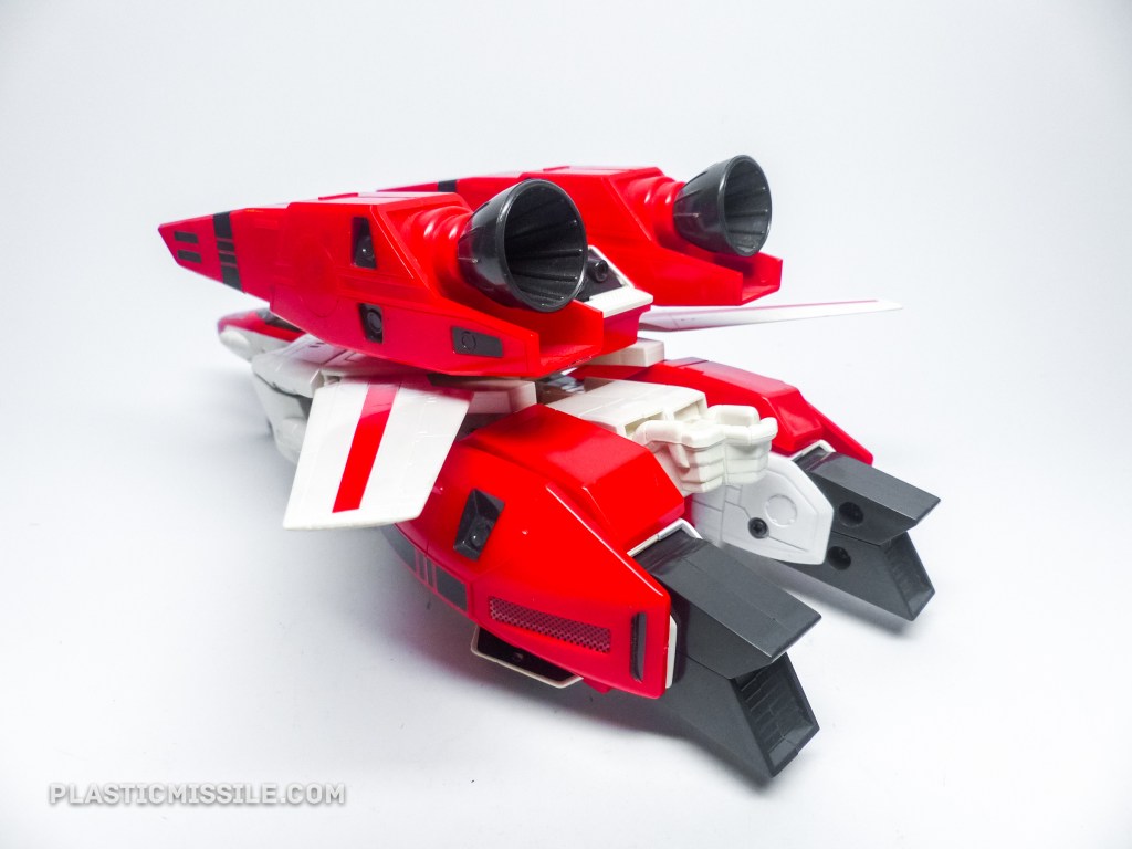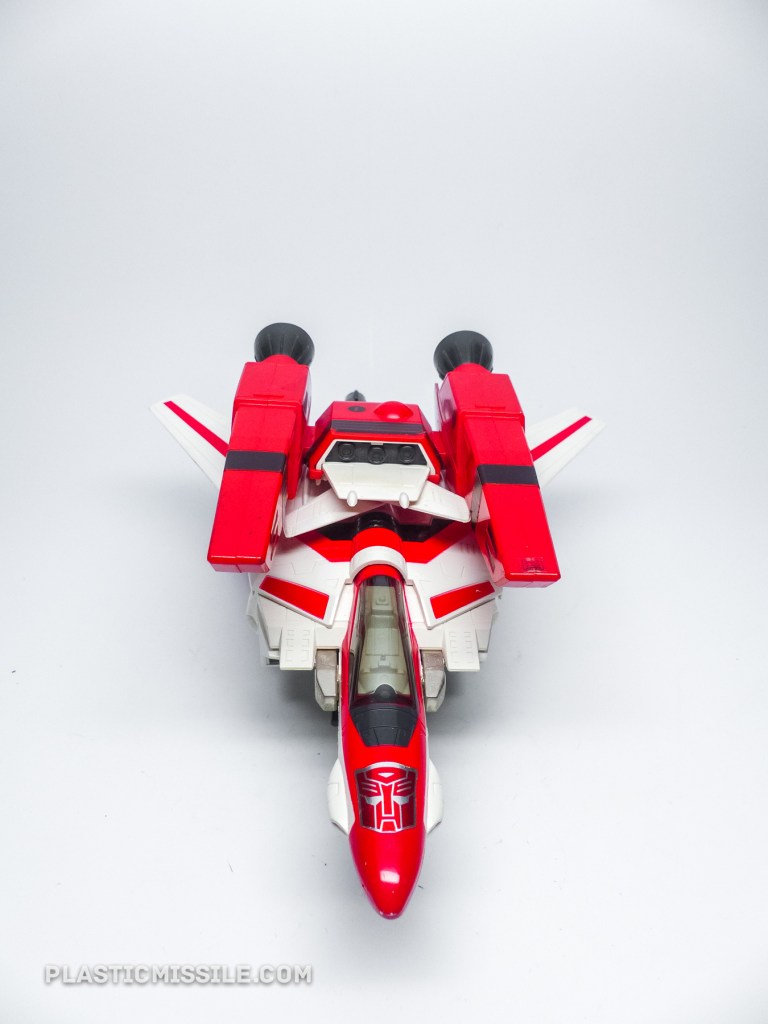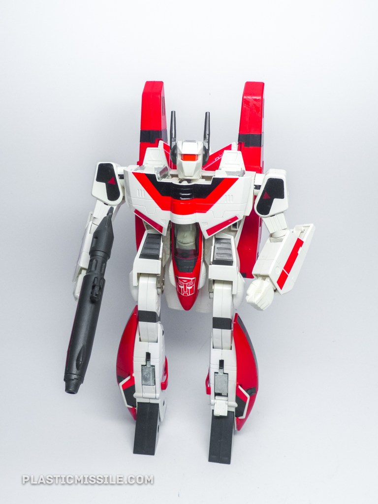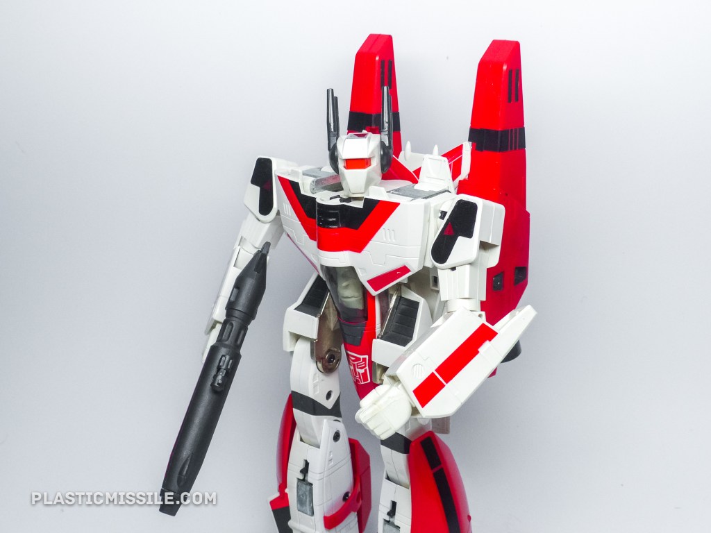 I can honestly say that Jetfire is one of my favorite robots of all time. It may be one of the simplest headsculpts, but there is something just so classic, so je-ne-sais-quoi about the cyclops visor and antennae that makes it one of the most iconic faces in robot history. That and the flashy yet classy color scheme of red, black, and white – like every good piece of engineering, from Ferraris and Lambos to fighter jets. From here on out, I’ll just let the pics speak for themselves…