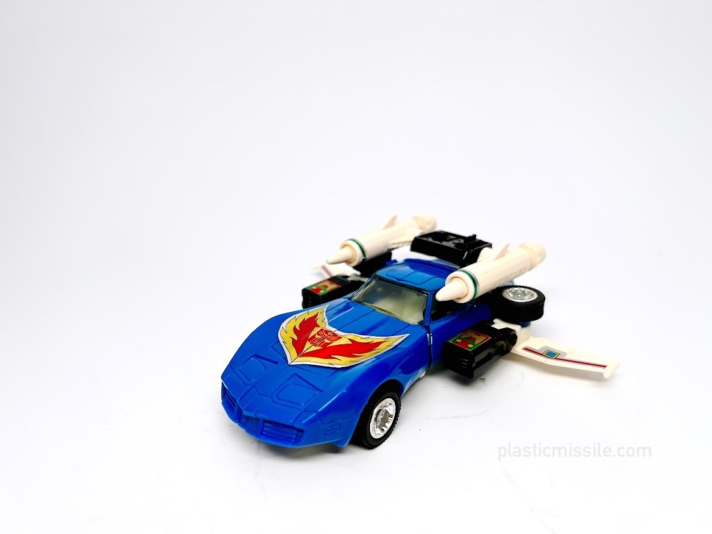 Funny that Tracks was a huge narcissist on the TV show, because I always thought Tracks was the best looking bot in the bunch. Top five, for sure. I reckon the idea of making his character into a big ego-tard had to do with him turning into a sexy Chevrolet Corvette Stingray. But oh, what a sexy supercharged muscle car it is. Can you blame him for being so vain about his looks?