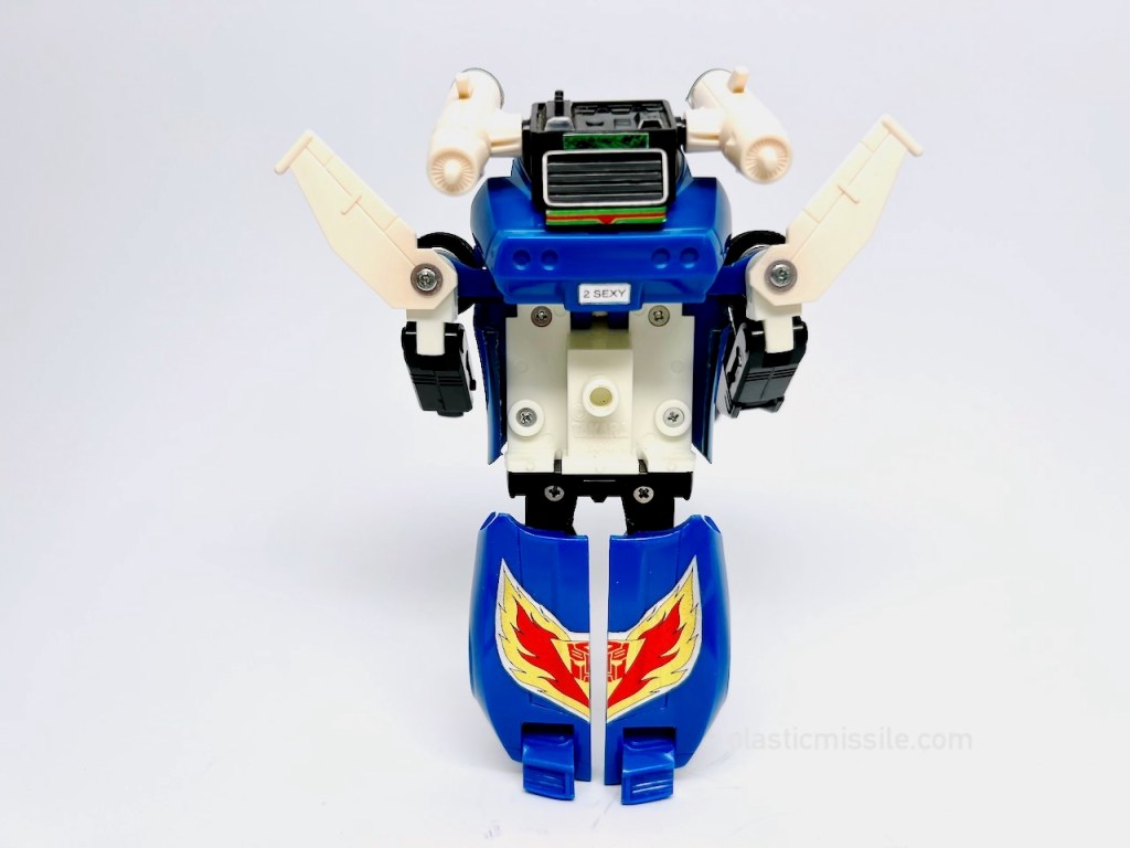 I also added the sticker as a reminder to myself that these are repos, in the event that I ever resold this figure. Wouldn’t want to try to inadvertently scam some poor future generation sucker into thinking these are the originals! But, being that these original G1’s are getting more and more rare to find in good condition, I doubt I’ll ever be able to part with one of my first and favorite Transformers from my childhood collection.