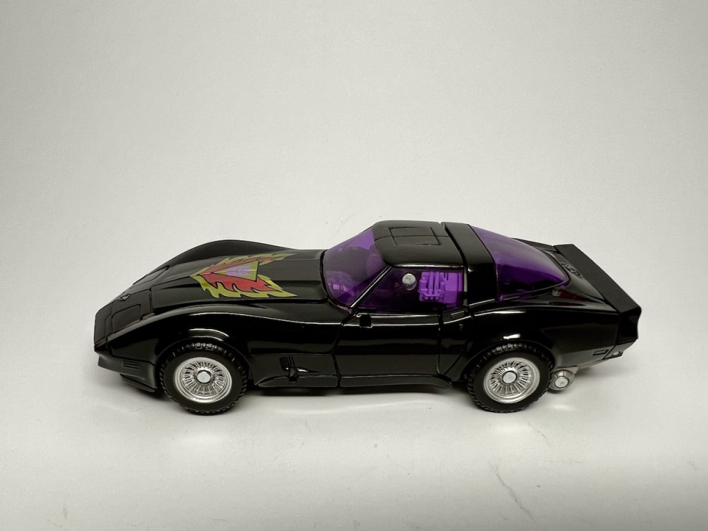 G1 Tracks was always one of my top 3 bots, blogged here, but I’m a sucker for black variants and exclusives of all kinds. Since there’s little chance I’d lay my grubby fingers on a Finnish Black Tracks, this beautiful bot will have to suffice! And in Corvette mode, it couldn’t get any nicer. Look at those curves!