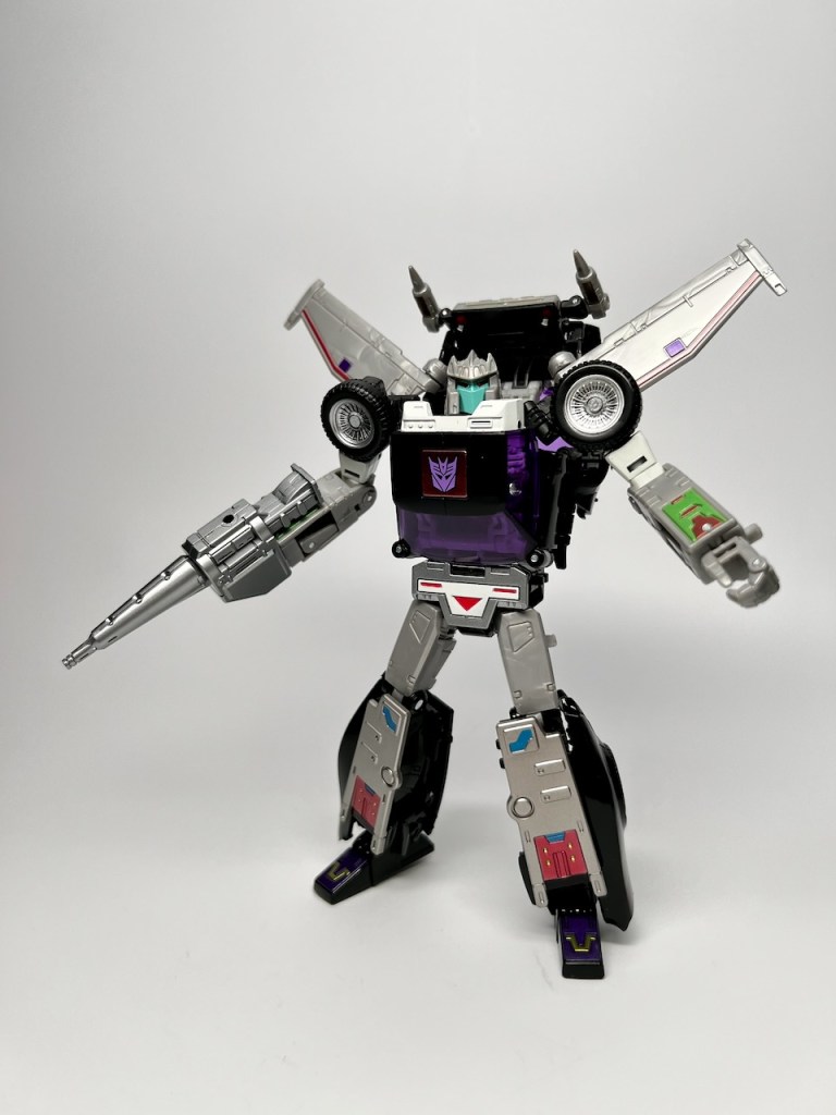 This one takes the cake for me. MP-25L Loudpedal may be my favorite all-around Masterpiece figure to date. They finally did Tracks justice as a Masterpiece, with full facemask and blaster, plus Takara gave us poorfolk access to the elusive, exclusive black giveaway colorway, in a proper homage to Diaclone. That checks off all the boxes for me. Plus, those Decepticon highlight colors… RAD! (P.s. still don’t have my camera setup working again, so just iPhone pics for now. Maybe I’ll reshoot someday, but probably not, haha.)