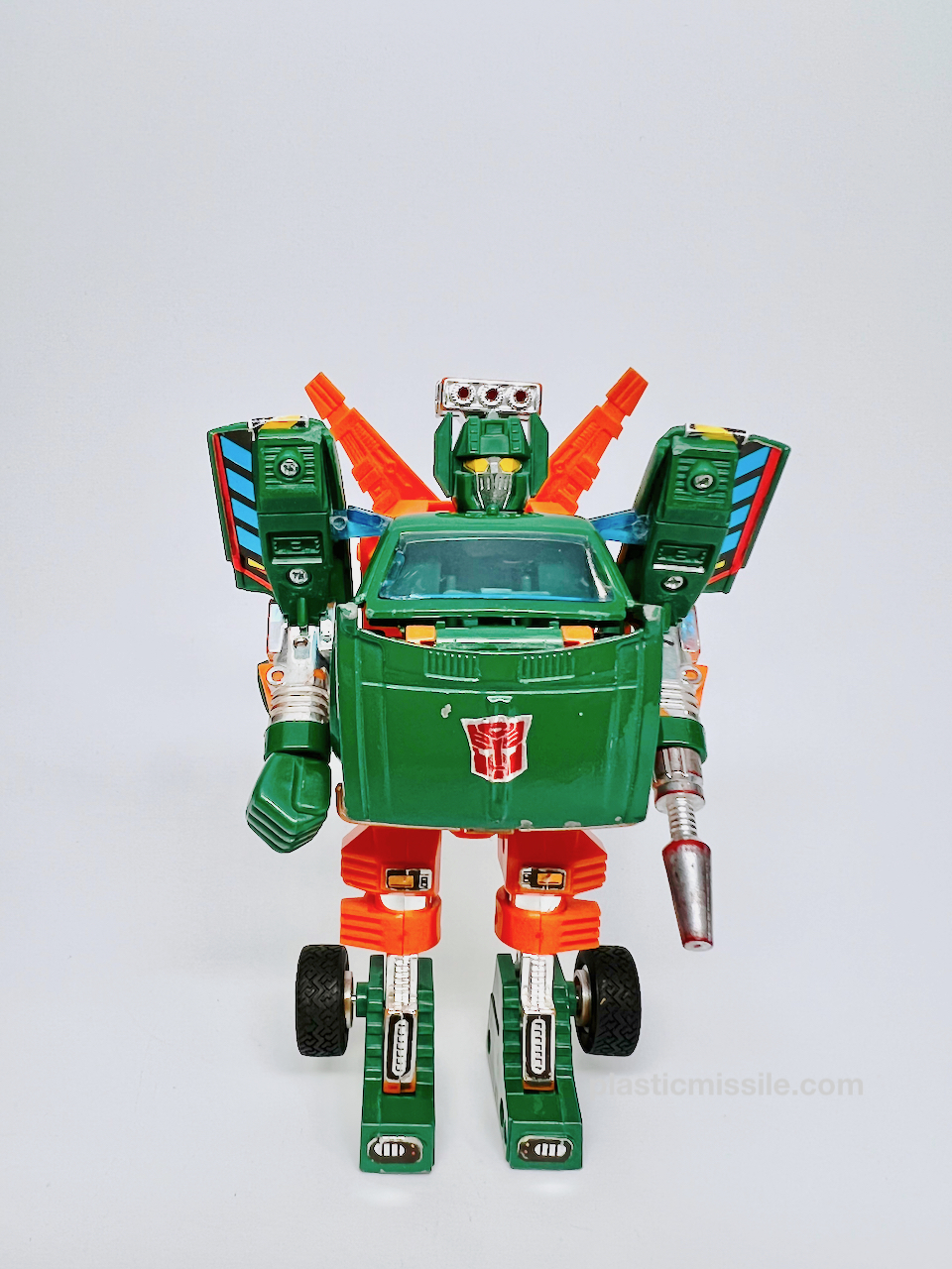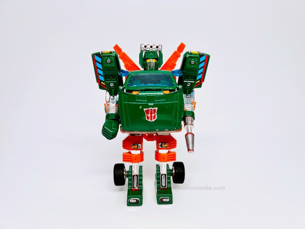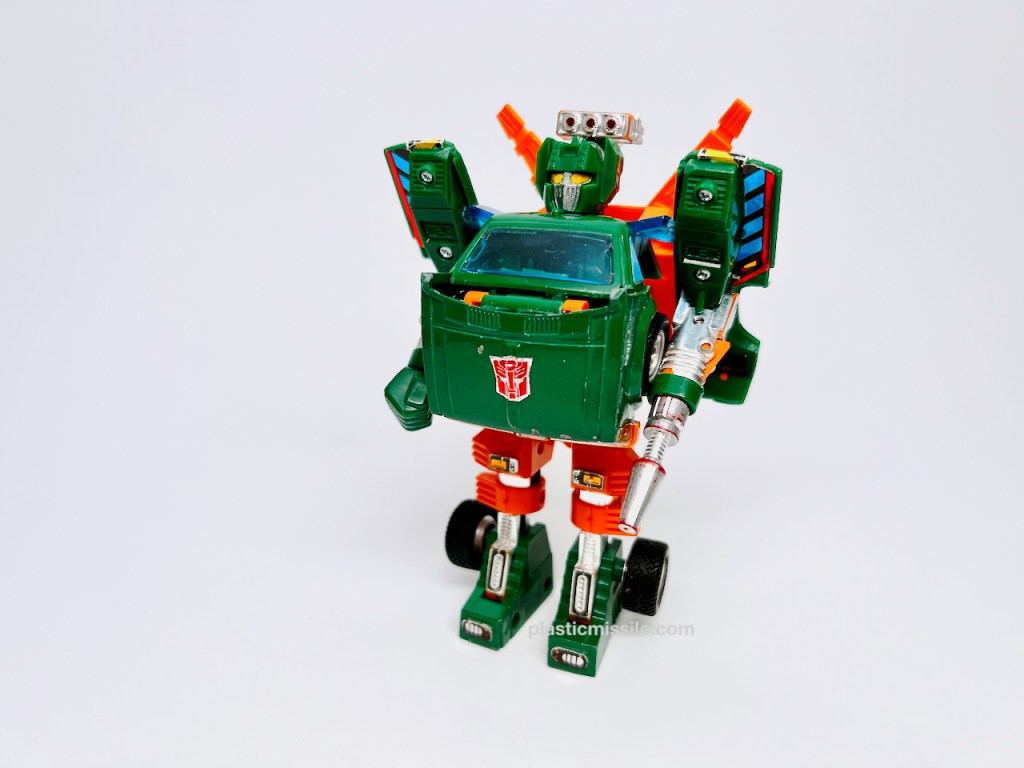 My Hoist is well-played with, well-loved by not me, but by someone else most likely around my age. I acquired this back in the early 2000’s before vintage G1 got really expensive. So I think I picked him up for $30 or so because of the missing parts, minor scuffs, missing stickers, worn chrome, and other aspects which back then, you could easily pick up a nice minty C8 loose Hoist for $50 or so. In other words, he was cheap for then and supply was in super abundance at this guy’s C5-ish state. Since then, with anything in limited supply, I think most G1 cars in C5 and up are getting harder and harder to find, and naturally so as G1 is the origin of the entire TF universe and should rightly so remain in the highest demand.