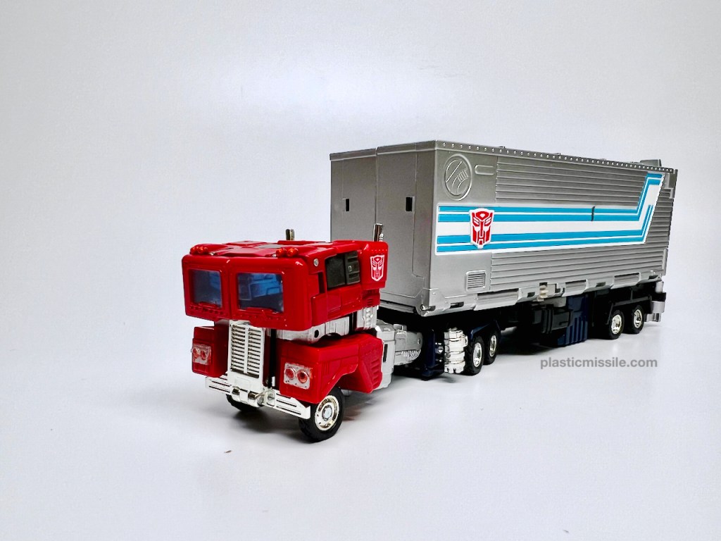 Kawamori was usually super focused on making the vehicle modes of his designs ultra realistic, based on the original real-life source material and streamlined in design, with very little kibble and no parts forming. However, I think for this release, he only provided input on Convoy’s robot form, because that truck bears no semblance to any real truck. Fortunately, the trailer is a really good representation of that all-too-familiar G1 trailer, with a ton of new details and features that I’ll cover in a bit. But regarding the truck’s design, it appears that parts of the truck have been used to form the robot mode in new ways that haven’t really been utilized before, albeit in an awkward transformation that relies on odd connectors and swivels, making the figure feel more like a puppet than a blocky bot.