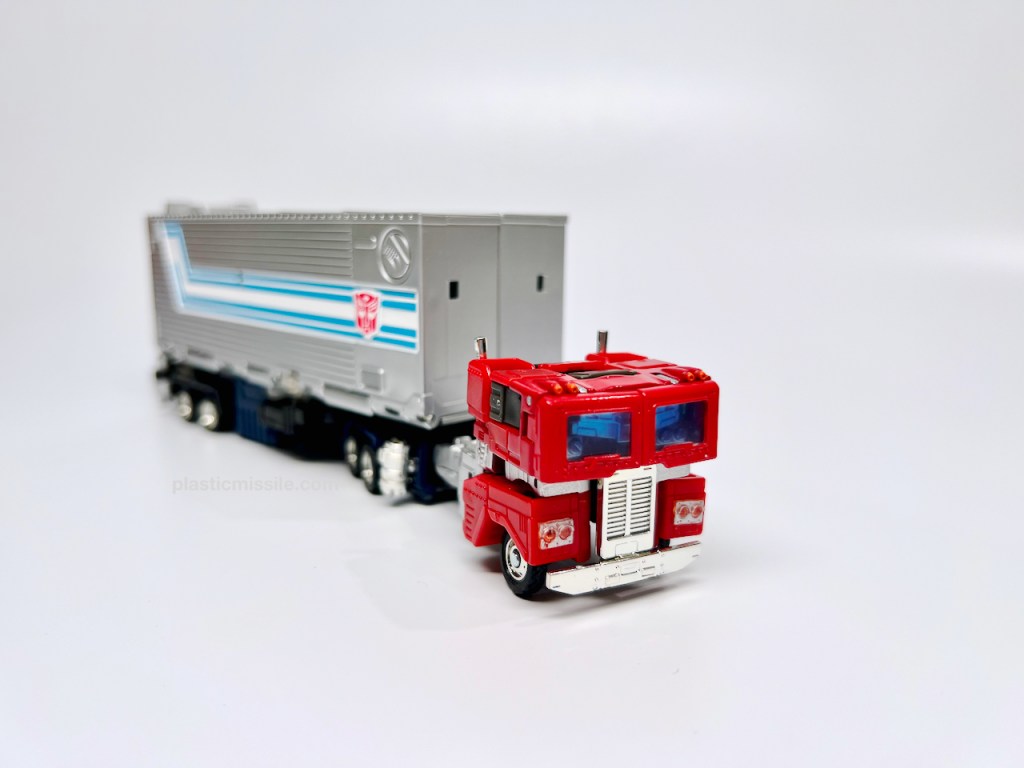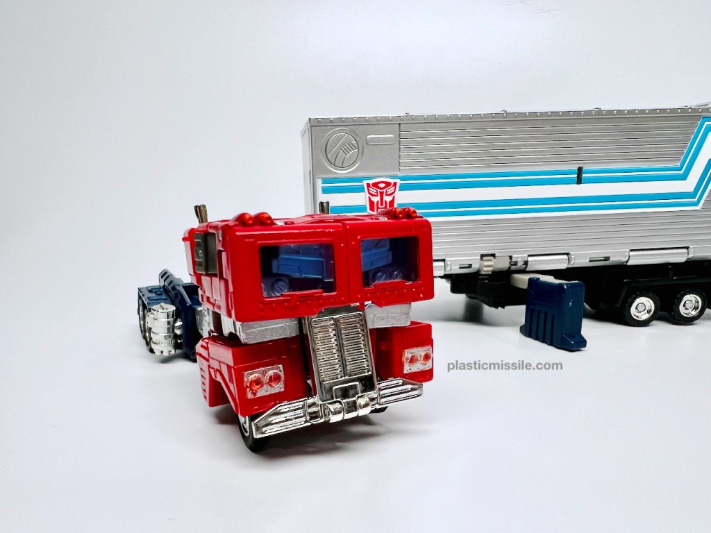 This is one of the best vertical hangar modes of any OP release to date, that pays tribute to the original Diaclone Battle Convoy modes shown in the promo materials and TV ads, while also adding some new styling and line details that update the trailer to a more modern-futuristic design. Of course, it would be great to see a design incorporate more features from the prototype version of Convoy in the Diaclone early 80’s catalog, such as the shoulder mounted cannon or long antennae, but then it wouldn’t really be Hasbro Transformers anymore; it would just be Takara Diaclone. Daily Prime did an excellent job collecting catalog scans and early proto pics of Diaclone Battle Convoy’s evolution into Hasbro Optimus.