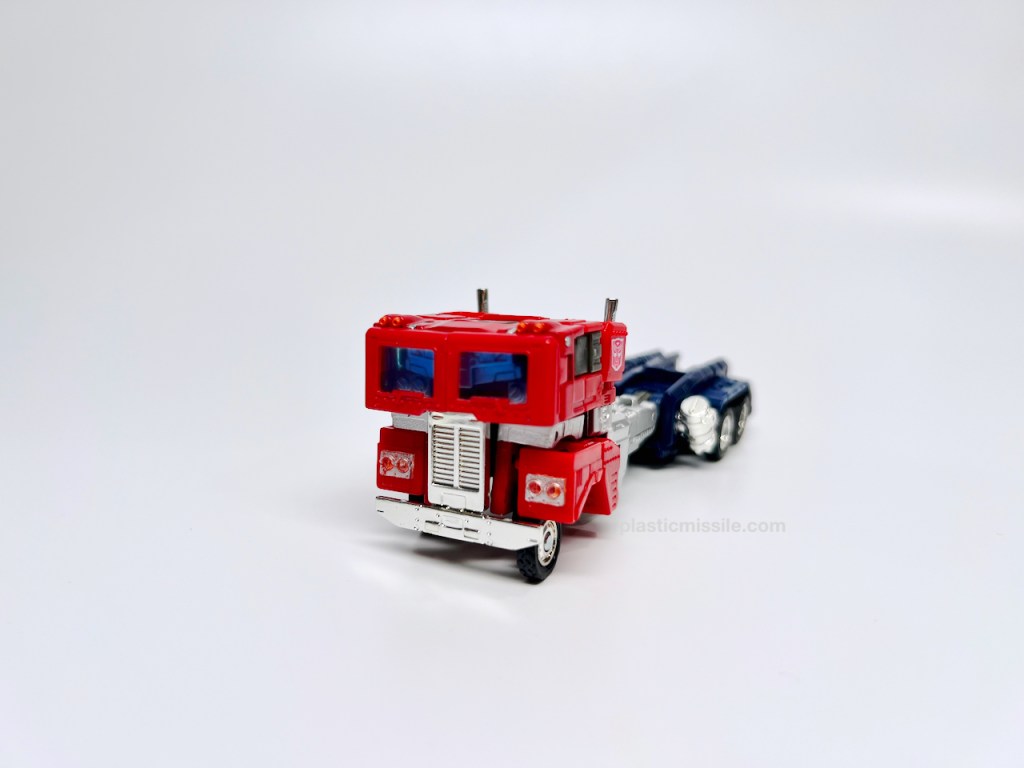 Interestingly, the transformation process from alt to bot (or vice versa) evokes elements of the original G1 Convoy, but intentionally misleads you into thinking that some parts will form their familiar features when they actually do not. It’s equally intriguing as it is frustrating to figure out for the first time, since there are many pieces that pop off and others that flop around while transforming him.