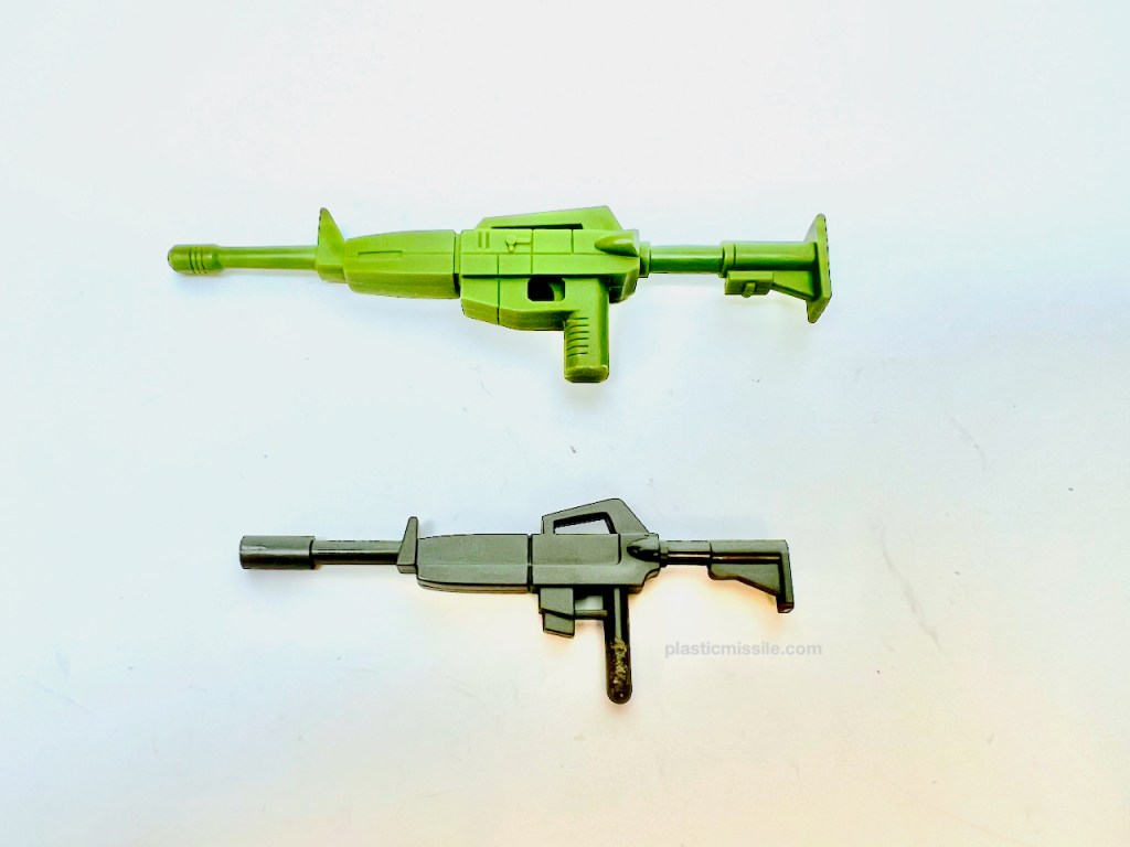 Both the jeep and robot modes are pretty spot on as far as capturing all the essence of the main sized figure. There is a non-transforming version that has all the armor and accessories as the 1:55 scale, but as it doesn’t transform, I’m not too interested in getting a redundant action figure version. The mini Mugen comes with a rifle that really resembles a simpler version of the original, with muzzle, stock, and all.