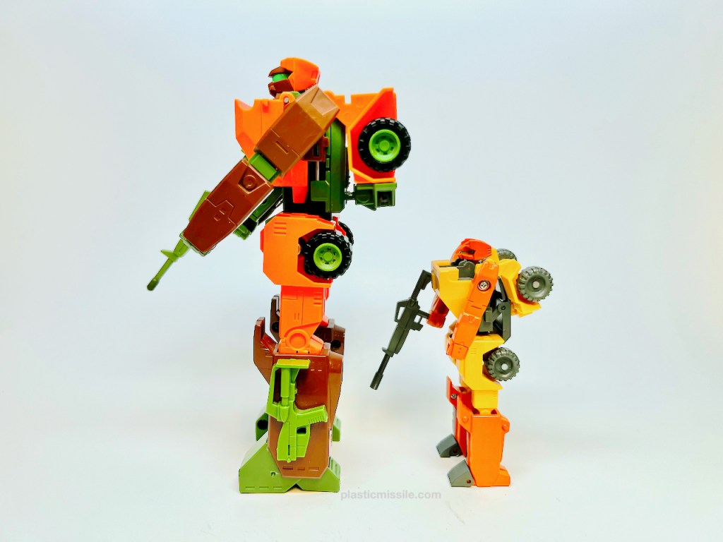 Even without all the weapons, the wheel covers, or the backpack, Roadbuster still looks like a really capable fighter. Side by side, the two iterations on this design both look equally formidable, well proportioned, and pretty badass IMO.