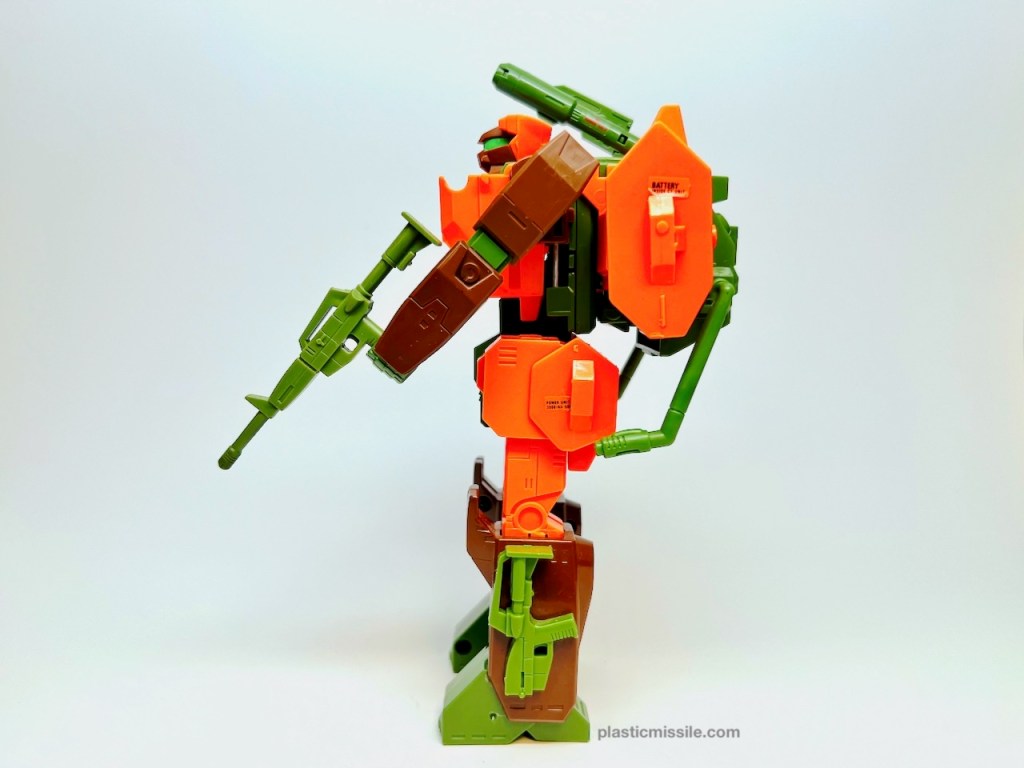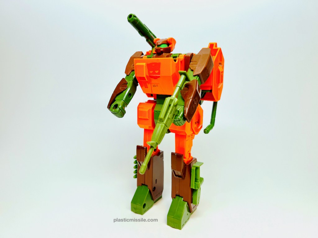 Roadie and Mugen are really cool looking examples of retro-futuristic military design from the 80’s. The shell armor, wheel covers, and armaments are very much in line with Macross Valkyrie VF1-S style of mecha, attributable to Shoji Kawamori’s influence on mecha design at the time. These armored military / police robots are always a core staple in anime, and besides the obvious frontrunners Macross and Gundam, the 80’s was chock full of them: VOTOMS, Mospeada, Patlabor, Orguss, Southern Cross, and Megazone 23 to name a few. Unlike Transformers, all of these anime robots were piloted by humans, not autonomous sentient lifeforms. Thanks to the efforts of Jim Shooter, Bud Budiansky, Simon Furman, and other TF contributors, the Transformers’ origin story is really a standout and divergence from the typical storytelling that focused on the plight of the human protagonists instead of the robots, and thankfully so – who cares about random humans when there are incredibly fascinating giant robots to feature?!