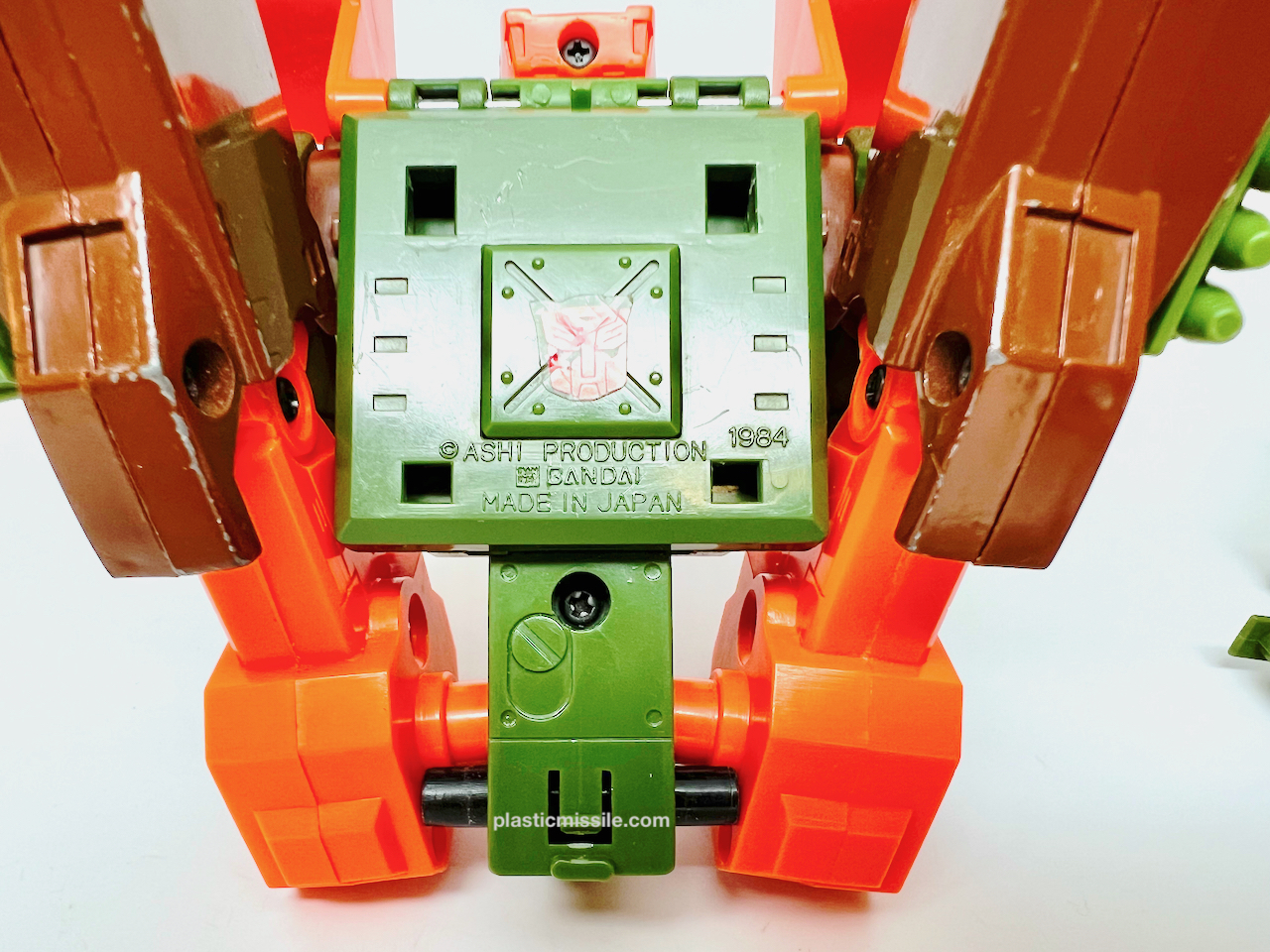 The copyrights of the G1 Hasbro Roadbuster already show that Roadbuster had already been acquired by Bandai but produced by the same factory, Ashi Production. The mini Mugen’s reads “Dorvack ©Takatoku Toys”. Dorvack would go down in history as the final release of Takatoku – their valiant, but failed, attempt to stay in the game.
