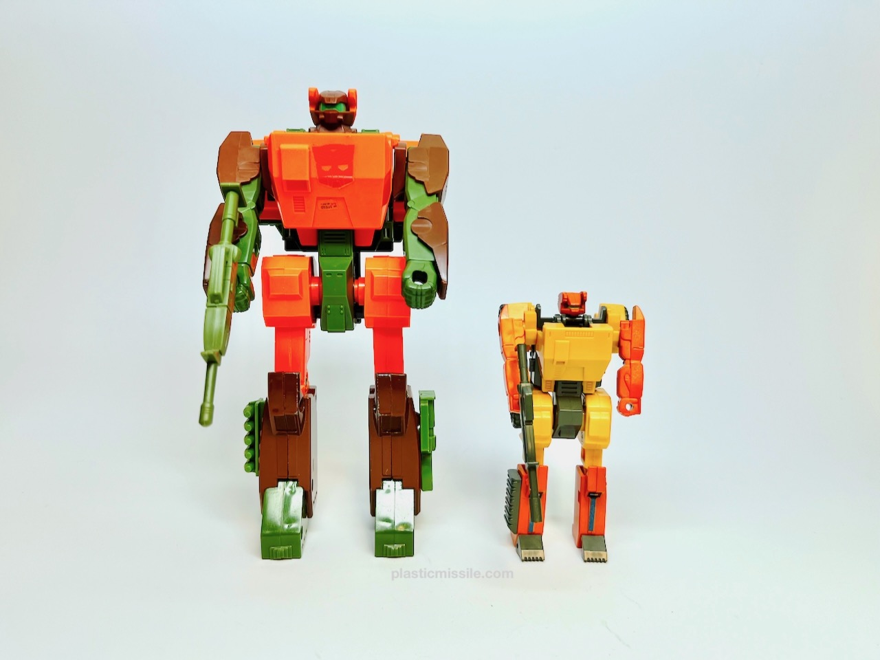 Even without all the weapons, the wheel covers, or the backpack, Roadbuster still looks like a really capable fighter. Side by side, the two iterations on this design both look equally formidable, well proportioned, and pretty badass IMO.