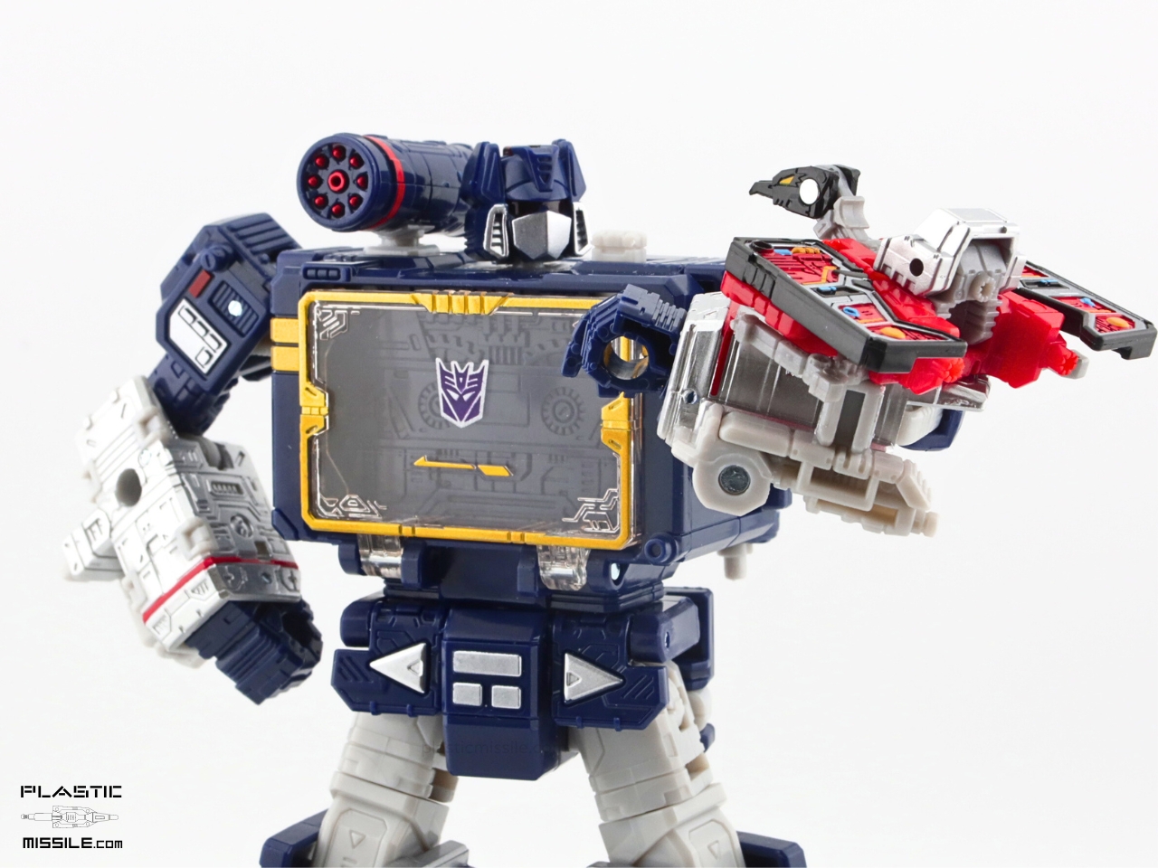 It’s funny to think that there are probably hundreds of transforming toys representing an obsolete cassette tape produced in the past 40 years thanks to Soundwave. Soundwave’s signature elements: early 80’s tape recorder stylistic elements and a spring-loaded door mechanism that can hold 1:1 size microcassette tapes which transform into diminutive minions for their larger robot partner. At this point in time, 2024, Soundwave is a cultural artifact. Anyone in the US, Asia, and Europe could probably recognize Soundwave – maybe not all by name, but by image and character, for sure. Tape deck robot with little tapes? Blue bad guy robot? Decepticon? Yeah, Soundwave is an icon.