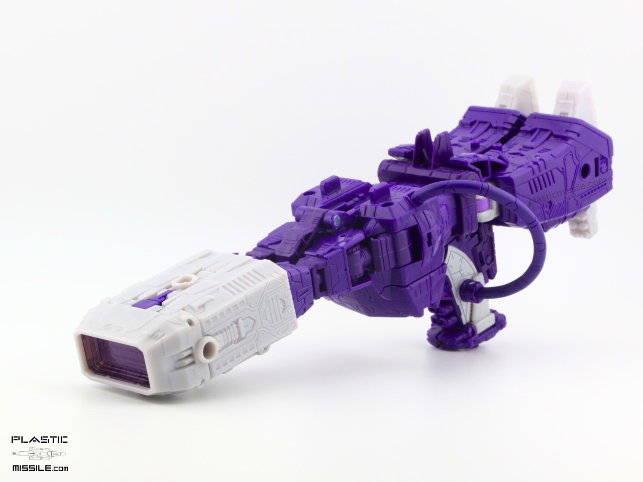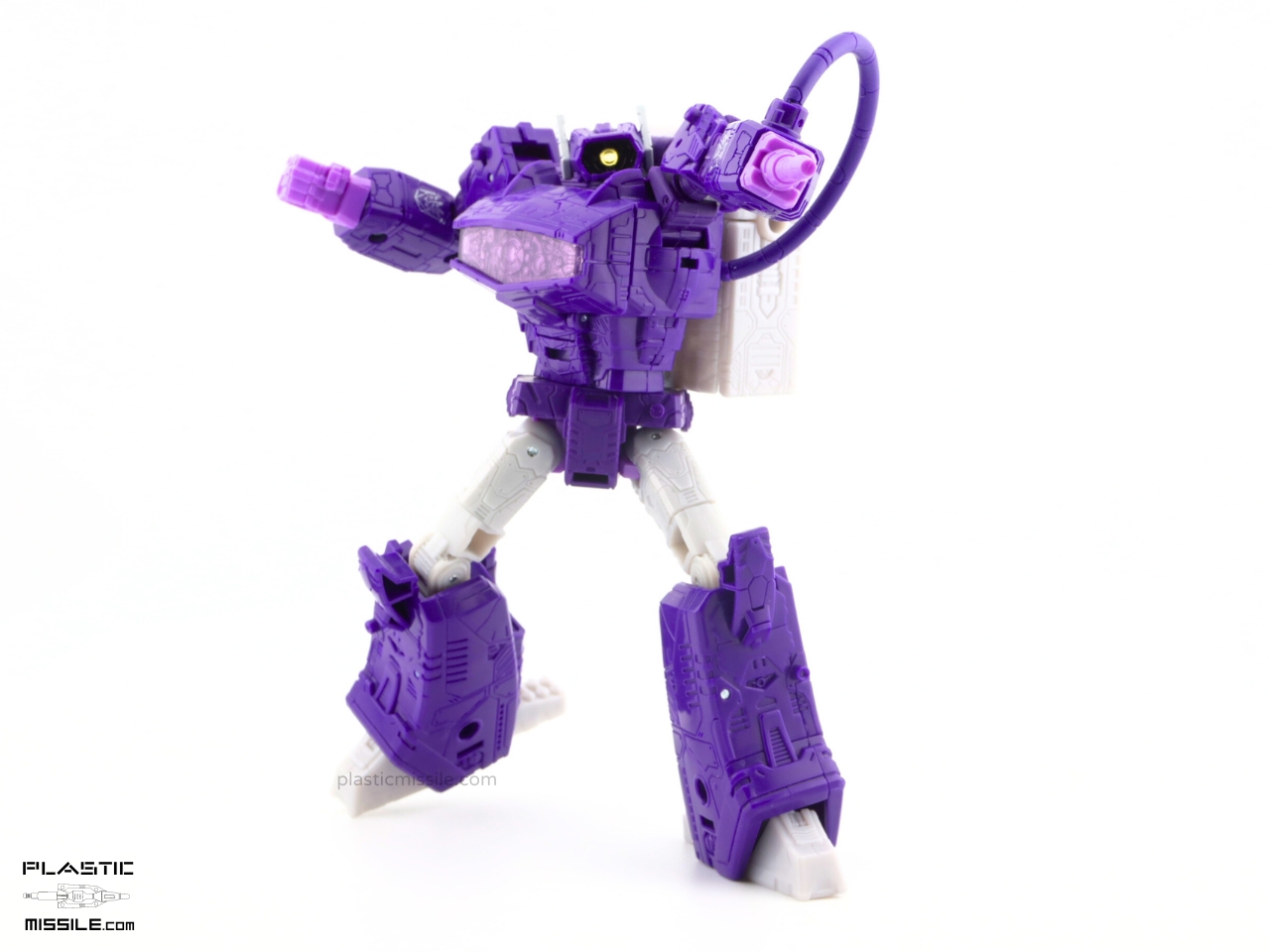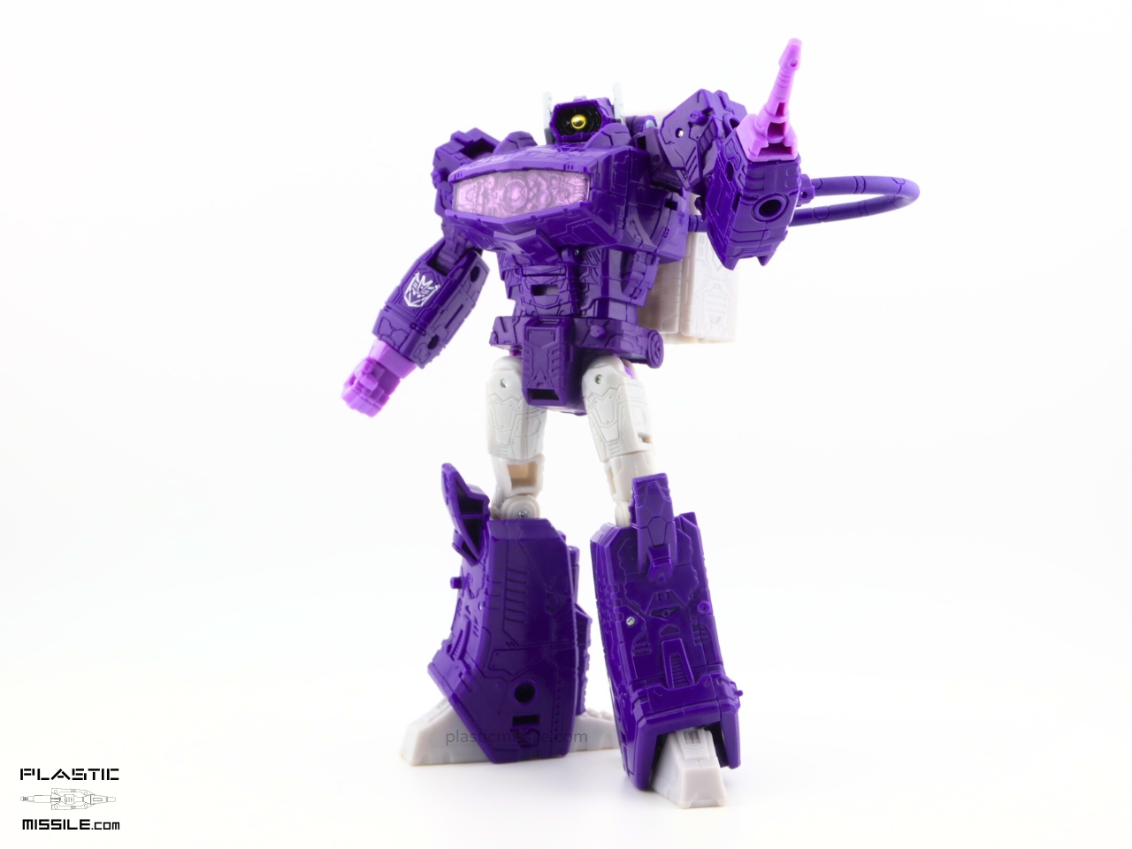 The original reason I got the Dramatic Capture 3-pack was for the silver paint apps on Soundwave. To be honest, I’m not even interested in taking out Megatron out of package because I’m not a fan of the design at all. But after having played with this figure and Soundwave for a few weeks now, I think this Shockwave is really the star of the show – at least a close tie. The articulation, the sculpt, the proportions, and most of all – gorgeous colors! I’m usually (almost always) toy-accurate over cartoon-accurate, but in this case we see a balance struck somewhere in the middle. It’s not lavender like MP-29, deep indigo purple like the original G1 (which I posted an even deeper purple KO here) or toy-accurate MP-29+, or a navy blue purple like its original mould mate, WFC Siege Shockwave. No, it’s another purple. It’s violet purple. VIOLENT purple, perhaps, as it’s Shocky?
